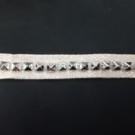 Altezza 2cm. Bordo panna con lurex argento. Borchie centrali in plastica argentata.